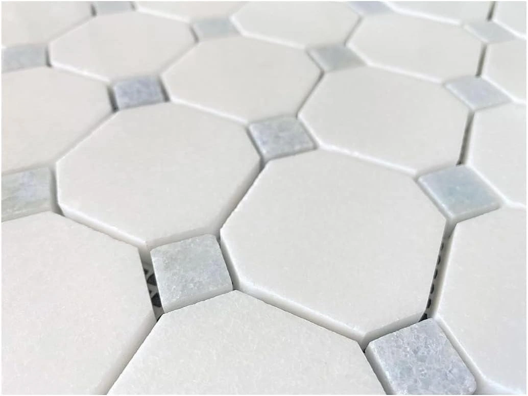 4. Thassos White Marble Octagon Mosaic Tile