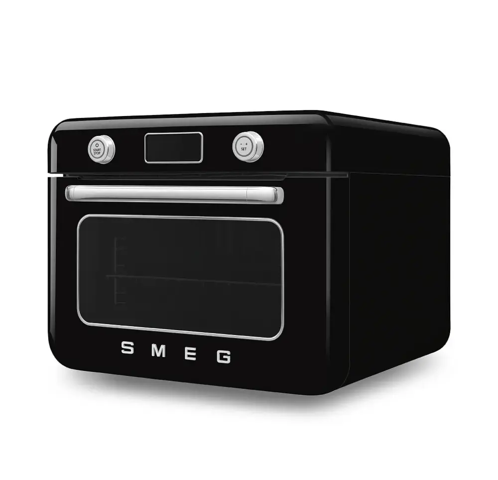 The Smeg Anni 50 series oven is styled with vintage aesthetic flair, combining retro curves with modern cooking performance. In a luxury kitchen, contractors may position it in a display wall or feature cabinet. The aesthetic contrast with minimalist cabinetry is a design move.